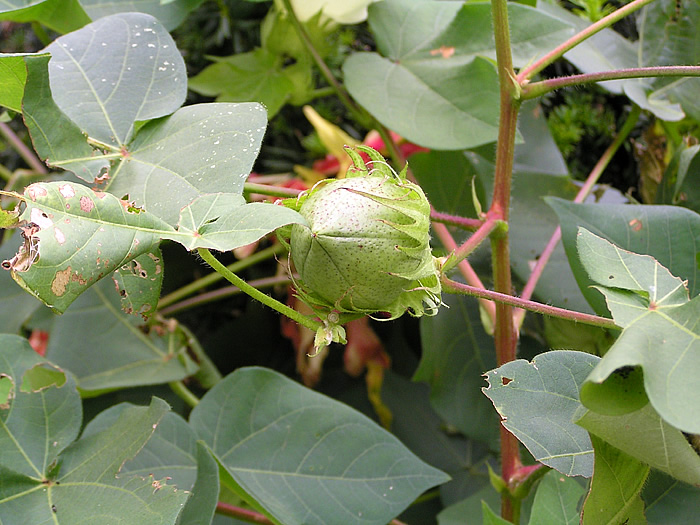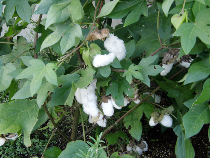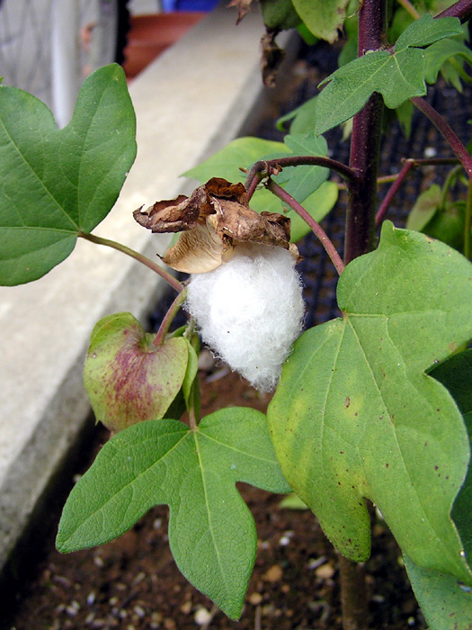 | 品種 | 主な栽培種には「アジア綿」、「陸地綿」、「海島綿(ペルー綿)」などがある。「アジア綿」には木立性の「G. arboreum」と草本の「G. herbaceum」があるが、双方とも繊維が短く、ネルやキャンバス、布団綿、脱脂綿などに利用される。「陸地綿 G. hirsutum」は用途が広範で実用的。「海島綿(ペルー綿)G. barbadense」は繊維が長いため、高級品種として名高い。 |