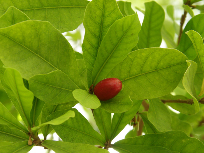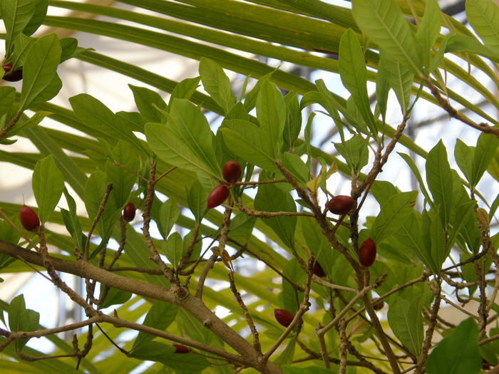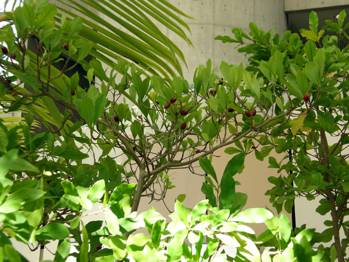 鉢植え。果実には、酸味を甘味に変える作用を持つ成分“ミラクリン”が含まれており、酸味の強いものを食べる時に利用される。 |