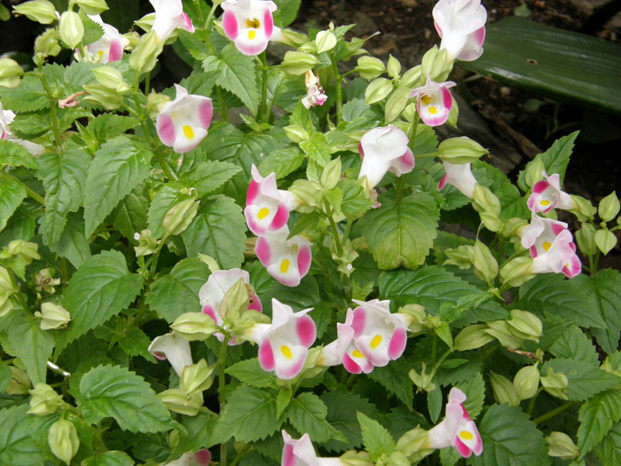 | 形態 | 茎は細い四角柱状で下部でよく分枝して叢生。葉は卵形、先鋭で鋸歯があり、対生する。葉腋から花柄を出し花筒形をつける。5~10月頃と花期は非常に長い。 |