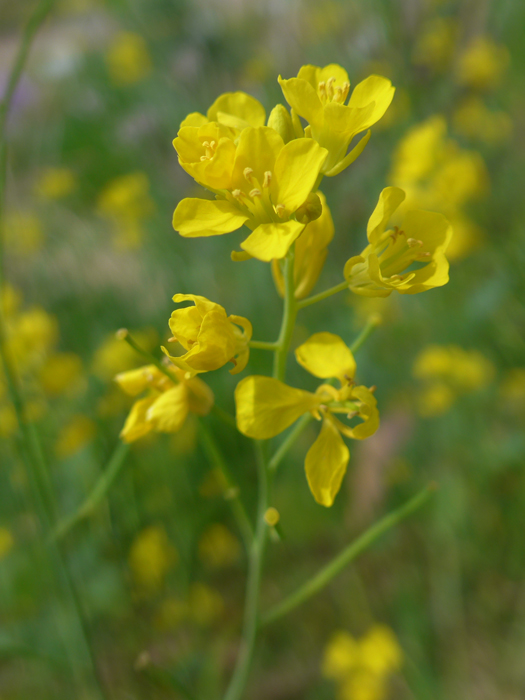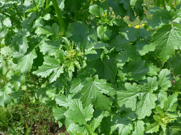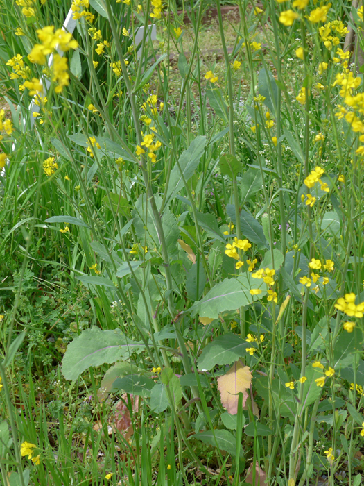 | 類似 | よく似た「セイヨウアブラナ B. napus」や「アブラナ」は、茎生葉の基部が茎を抱いている。 |