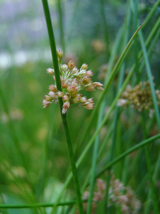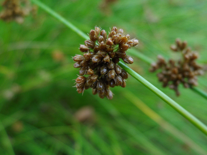 | 形態 | 細くてまっすぐな花茎を多数叢生させる。茎の基部に褐色で短い鞘状の葉がつく。5~6月頃、茎の先に花序をつけ、その先に茎と同じような苞をつける。花序は花茎の中央部に横向きに出ているように見える。花被片は披針形で6枚。果実は卵形~惰円形の蒴果で、花被片とほぼ同じ長さかやや長い程度。 |