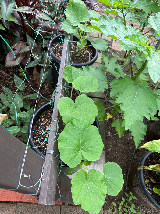 | 生育 | 水はけ日当たり良く。種子蒔きは、4月中旬~5月上旬。摘芯はしなくてよい。果実が小さく重くなければ、支柱などで誘引して、縦方向に伸ばしてもいい。早朝に人工授粉すると、結実率が高まる。 |