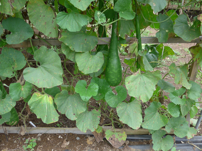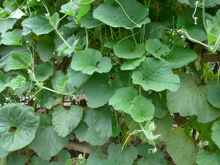 | 生育 | 日当たり、風通し良く。棚作りに向く。蔓の下の方から葉が枯れて見苦しくなる。うどんこ病が発生しやすい。連作障害が出やすい。 |