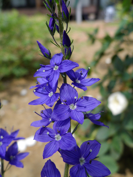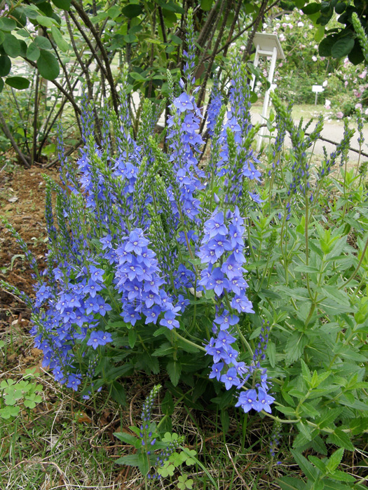 | 形態 | 葉は光沢のある披針形で、ごく浅い鋸歯があり、対生する。5~6月に、明るい群青色の花を穂状につける。秋には地上部が枯れてくるが、株元に冬芽ができ、冬芽で越冬する。 |