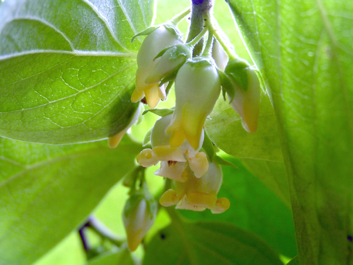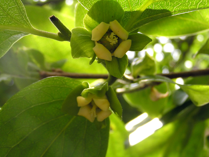 | 形態 | 樹皮は粗い。光沢のある葉は互生する。花は普通の栽培品種では雌雄異株だが、同株もある。 5月下旬頃、1年枝の葉腋に薄黄の目立たない花をつける。雄花は集散花序を作り、雌花は単生する。雌花は花弁と萼が大きい。果実は液果で、品種によって大きさ、形、色、種の有無などが異なる。晩秋には紅葉する。 |