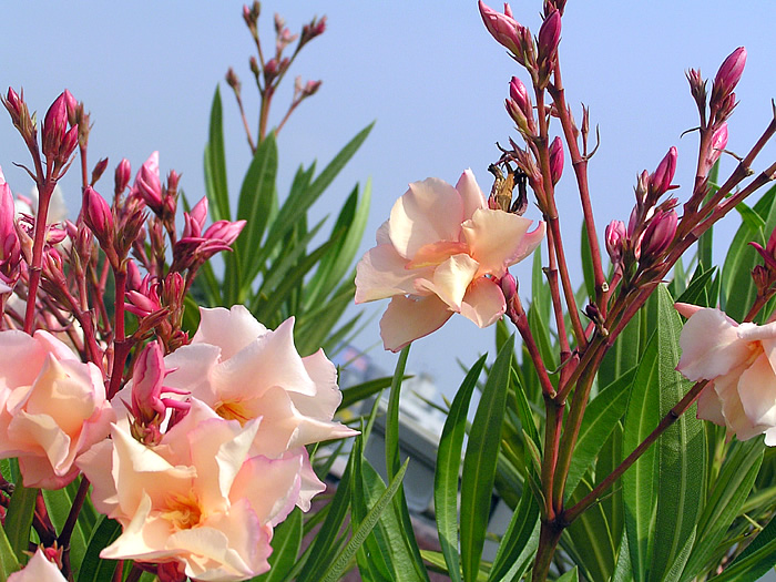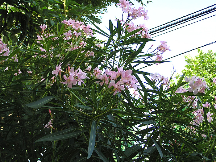 | 名の由来 | 「夾竹桃」は、葉の形状が竹に似ていて、花が桃に似ていることから。 |