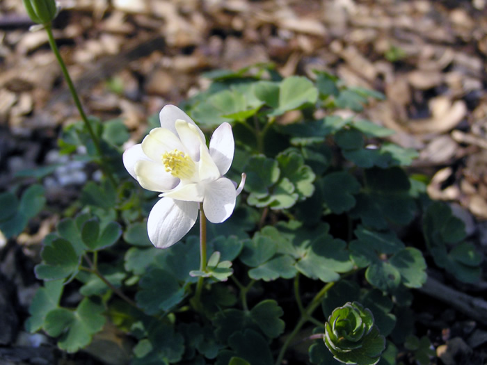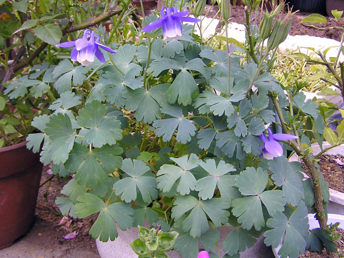 | 品種 | 野生種は「ミヤマオダマキ A. flabellata var. pumila」で、これから様々な園芸品種ができている。園芸品種は花が大きくて花数が多く、花色も、白や薄桃の品種がある。 近縁に山地に自生する「ヤマオダマキ A. buergeriana」がある。 |