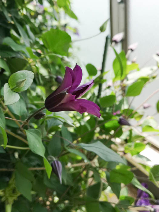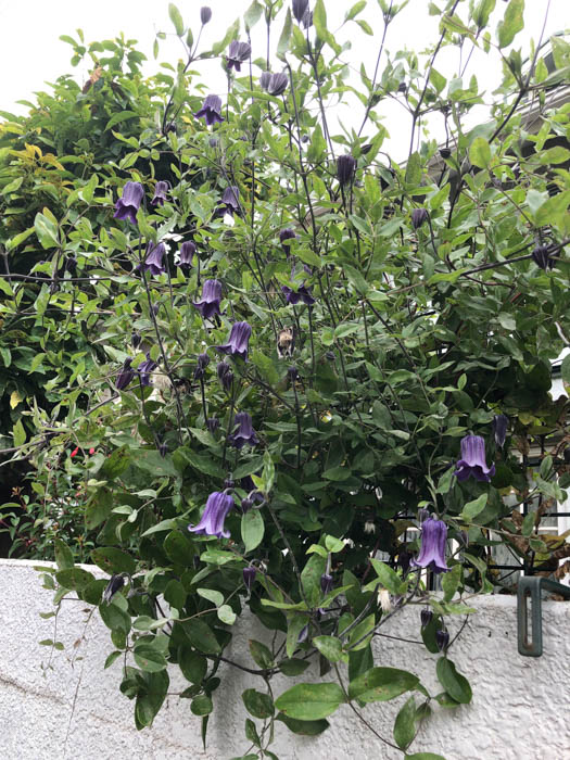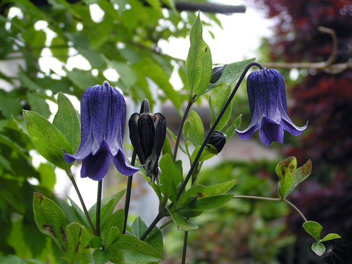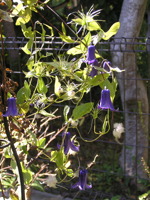 | 特徴 | 「クレマティス・レティクラタ Clematis reticulata」との交配種。半蔓性で、他物によりかかりながら成長する。花は濃紫色の鐘形で、下向きに咲く。花長は3〜4cm。多花性、四季咲き性。強健で栽培容易。 |