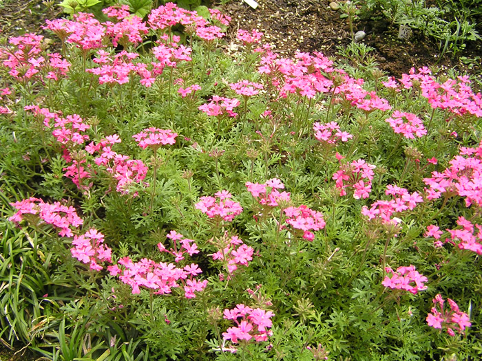 | 形態 | 匍匐性のものが多いが、立性のものもある。葉は対生し、切れ込みの少ない“単葉系”、細く深い切れ込みの入る“複葉系”がある。開花期は5~11月。 |