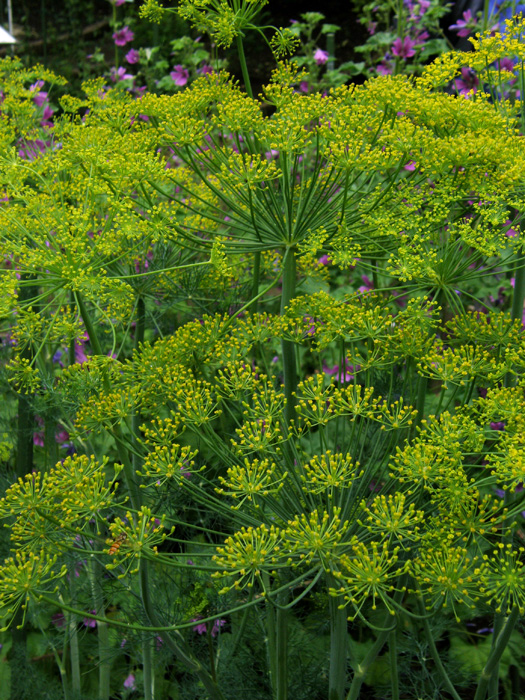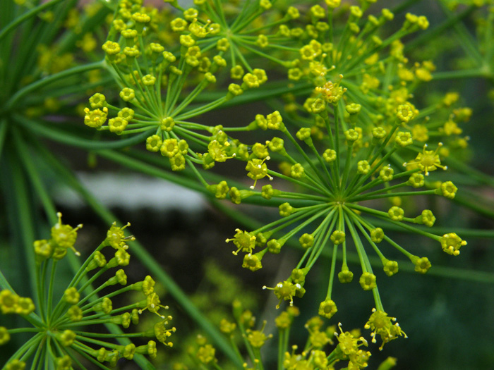 | 形態 | 茎は中空で直立し、やや分枝する。葉は2~3回奇数羽状複葉で、互生する。小葉は灰緑色で柔らかい糸状。5~7月に茎頂に複合散形花序をつけ、黄色い5弁花を多数咲かせる。種子は扁平な楕円形で、表面に縦方向の縞がある。 |