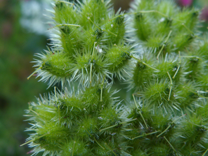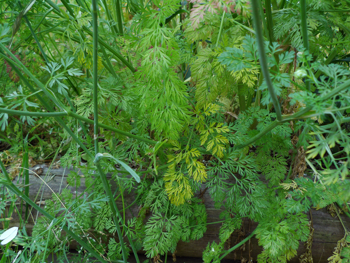 | 形態 | 茎は直立し、分枝する。葉は2~3回奇数羽状複葉で、葉質は薄く、互生する。小葉は細かく深裂して線形になる。長い葉柄の基部には葉鞘がある。5~6月頃、茎頂に複散形花序を作る。花は白色の5弁花で、花弁は中心に向かってくるりと巻き込む。花序の外側に位置する5花弁の内の1個は大きく、2裂し、平開する。小花序の外側に位置する花弁はやや大きめ、大花序の外側に位置する花弁はとても大きい。果実は長球形の2分果で、稜に沿って長い棘が密生する。 |