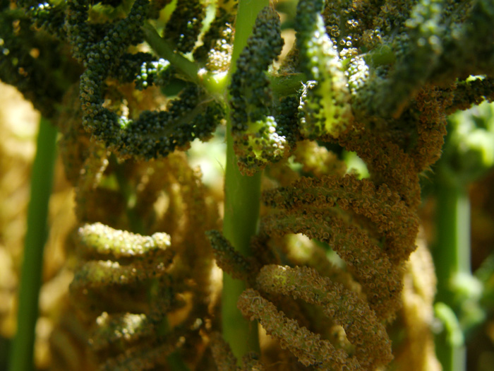 | 品種 | 稀に栄養葉の羽片に胞子嚢をつけるものがあり、「ハゼンマイ」と呼ばれる。 |