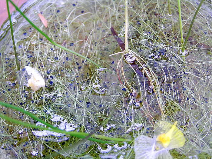 | 生育 | 水中に浮遊するものもあるが、ほとんどは浅い水底に沈み泥土の表面または泥土の中にうずもれている。非常に強健で、凍らせなければ越冬する。日本に帰化している。 |