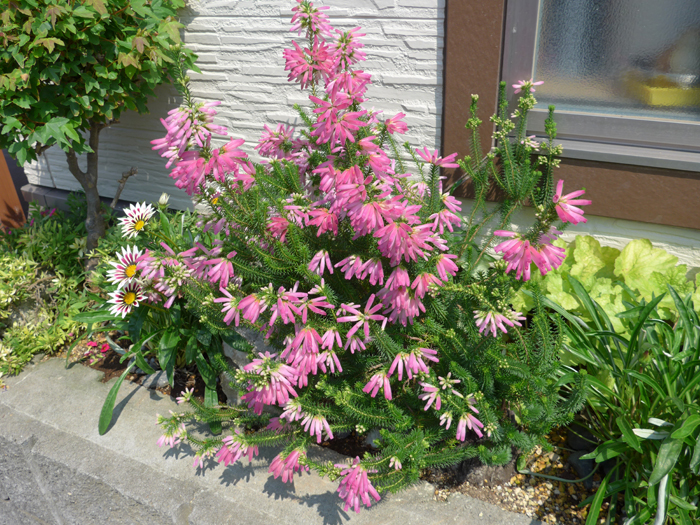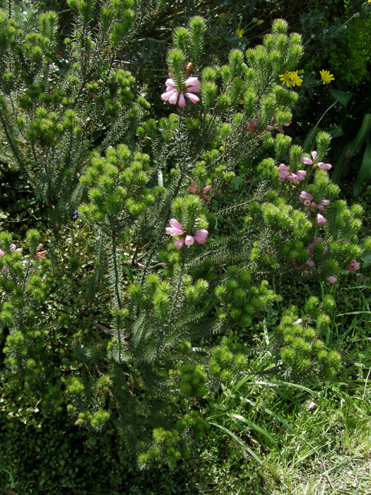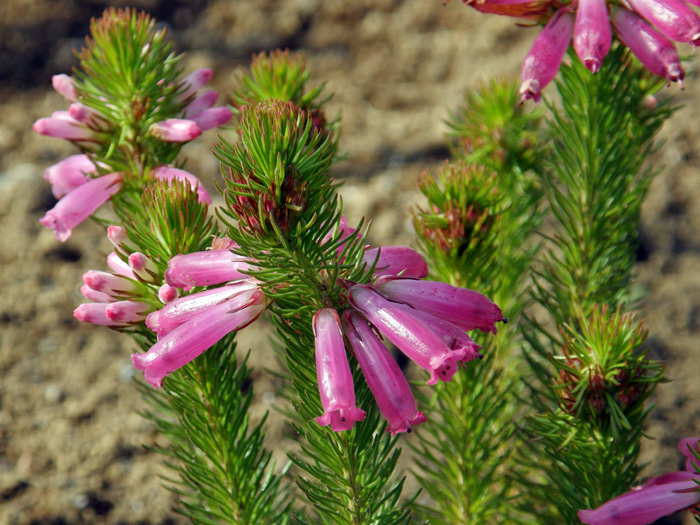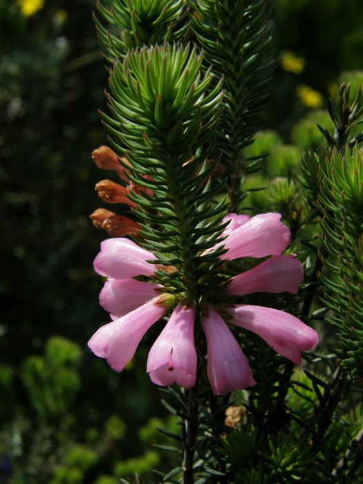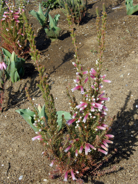 | 解説 | 700以上の種類がある。その大部分が南アフリカ原産で、他は、アフリカ大陸の他の地域、地中海沿岸地方、ヨーロッパが原産。 多くは高さ0.2~1.5m程度の小低木〜低木。針葉樹のような、針のように細くて短い葉を輪生させる。花の形は細長い筒状や丸い粒状で赤、白、ピンク、黄色などの色がある。 |