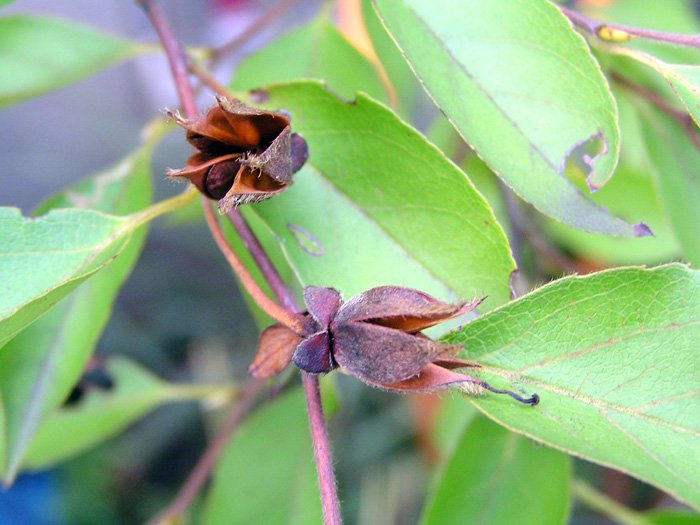 | 形態 | 幹は直立し、卵型の樹形になる。樹皮は明るい淡赤褐色で平滑、光沢があり、老木では樹皮の一部が剥離して、斑模様になる。葉は先が細く尖った長楕円形で、ごく浅い鋸歯があり、互生する。5~6月頃、当年枝の下部の葉腋に白い花を咲かせる。花弁と萼は5個で、雄しべは多数。花の下には2枚の苞がある。花は朝に開花し夕方に落花する一日花。果実は先が尖った卵形〜長球形の蒴果で、10月頃熟すと5裂して、種子を出す。種子は偏平な楕円形で、翼がある。 |