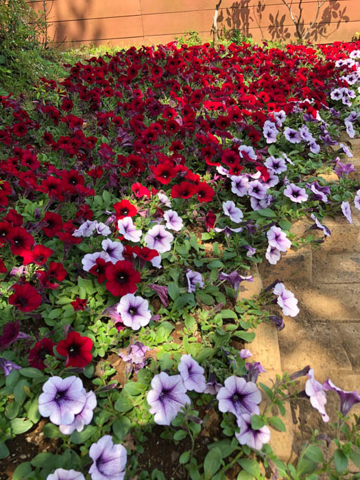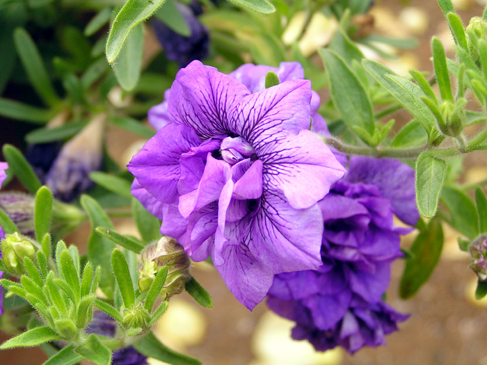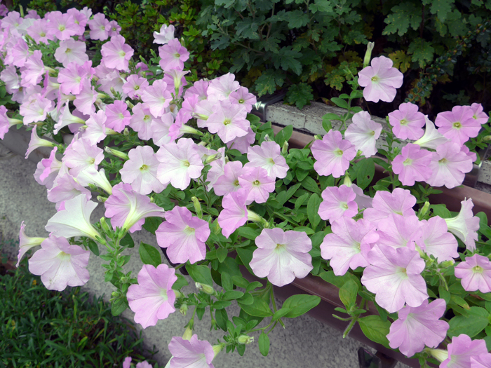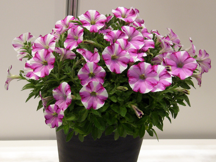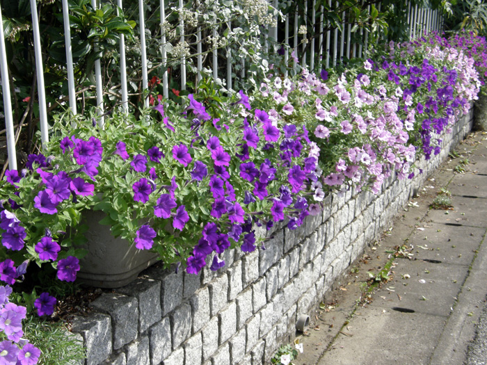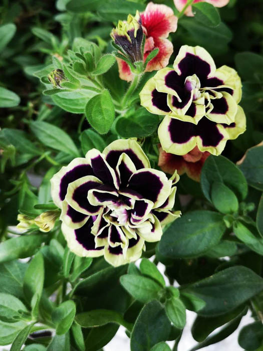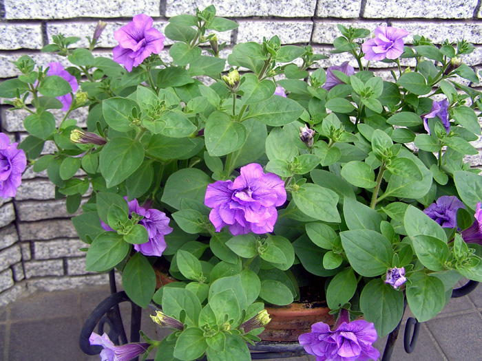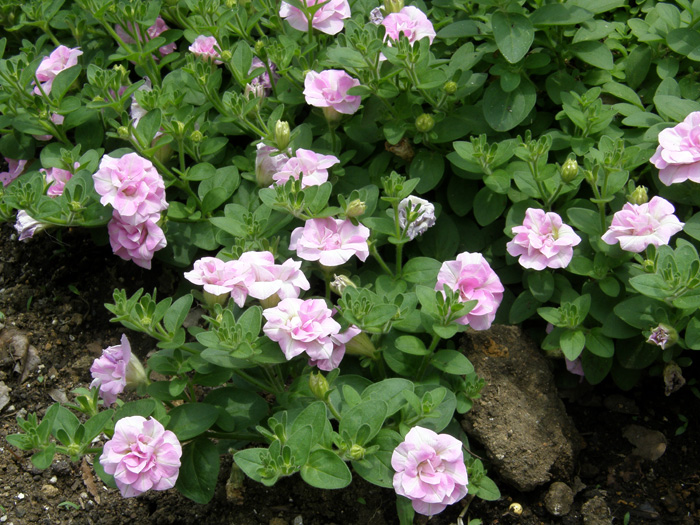 | 品種 | 立性と匍匐性がある。花色は赤、桃、青、紫、白など多彩。覆輪、星形、白絞りなどもあり、八重咲きもある。 カリブラコア属とペチュニア属との交配種「ペトコア属 Petchoa」も作り出されている。 |