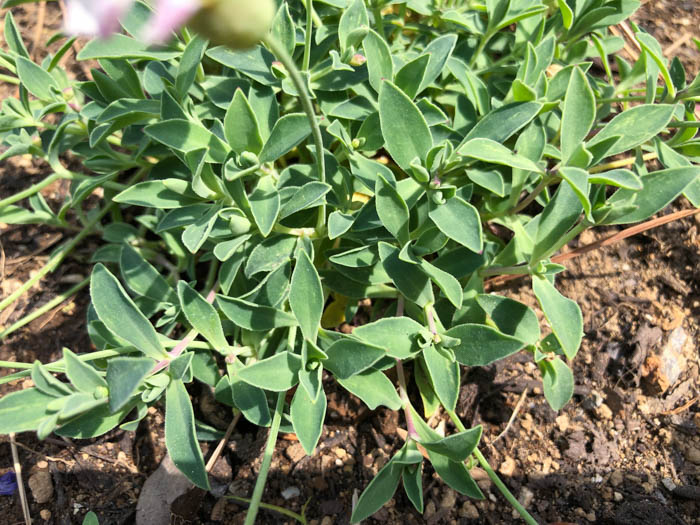 | 形態 | 茎は軟弱で地を這って伸び、マット状に広がる。葉は先が尖った長楕円形〜広披針形で対生する。5〜7月頃、茎頂に白色〜薄桃色の5弁花を咲かせる。花弁は倒卵形で、花弁が2枚に見えるほど先端が深く凹む。雌しべの花柱は3本、雄しべは10本。雄しべの葯は黄土色や茶色。萼は袋状の卵形で、赤っぽい網目模様が入る。果実は蒴果。 |
