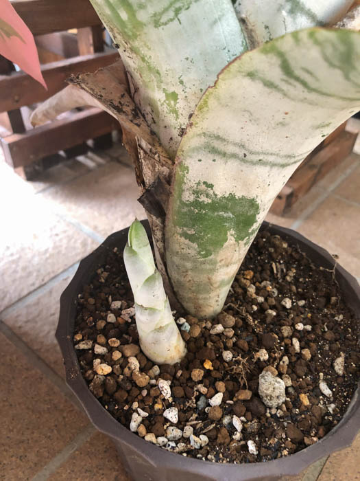 | 生育 | 明るめの半日陰で管理。水やりは、筒状になった葉の中に水を溜めるようにする。一度花をつけた株は再び花を咲かせることはない。株元から子株が出るのでそれを株分けして殖やす。子株は2年ほどで花を咲かせる。 |
