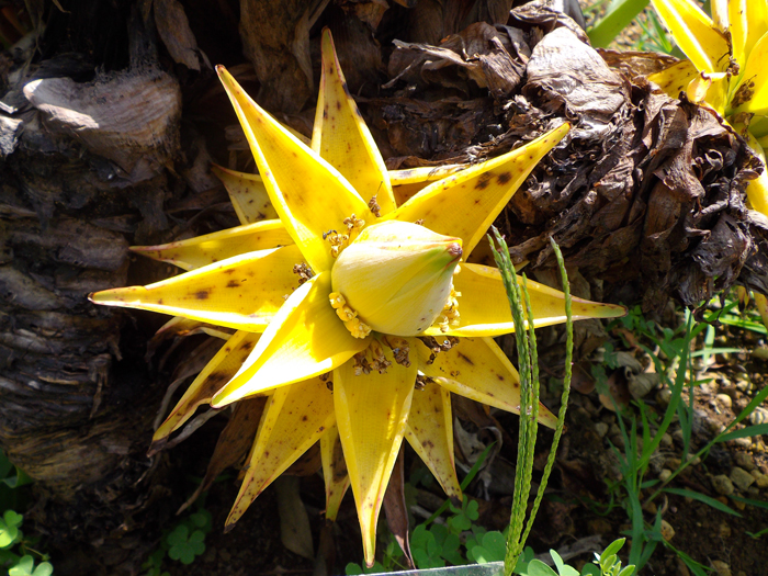 | 名の由来 | 「地湧金蓮」は、葉が無い状態で地面から金色の蓮の花が湧いてきたように見えることから。 |