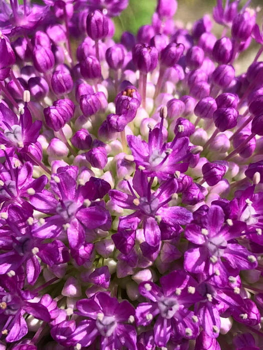 | 形態 | 地下部に鱗茎ができる。早春に萌芽、地際から薄緑色で広披針形の葉を放射状に出す。5~6月頃、花茎を立ち上げ、茎頂に袋状の総苞で包まれた花序ができ、総苞が開いて花を咲かせる。花序は球形。花被片は鮮やかな赤紫色で、6枚が平開する。花が咲く頃には葉はやや黄色く枯れはじめている。花後、地上部が枯れ、休眠する。果実は蒴果。 |