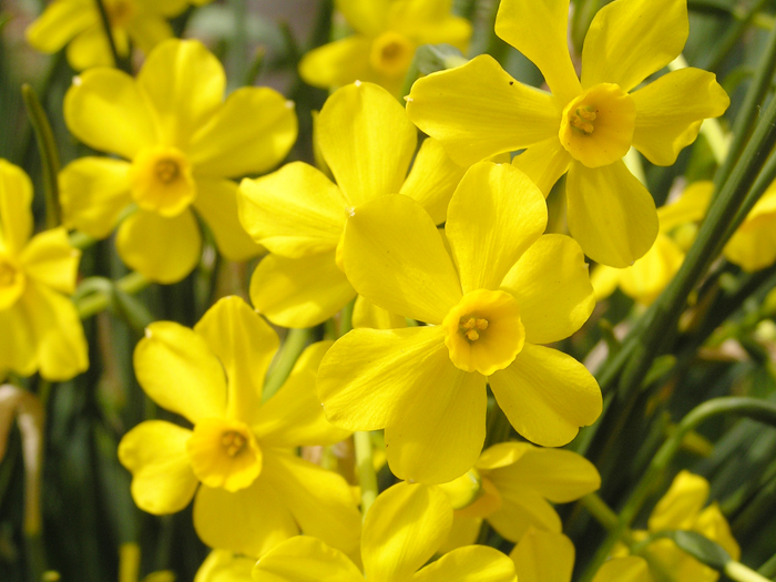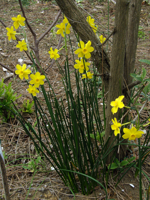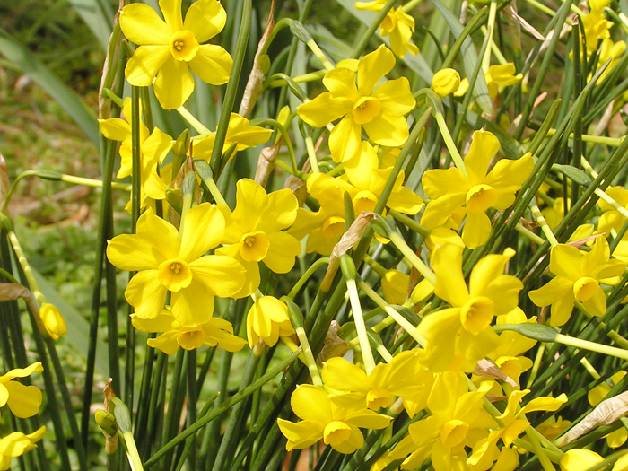 | 解説 | 原種「ナルキッスス・ジョンキラ=キズイセン Narcissus jonquilla」あるいは「ナルキッスス・アポダンサス Narcissus apodanthus」の特徴をもつ。 1茎に1~5の花をつける。葉は幅が狭く、濃緑色。花被片は平開するか、反り返る。副花冠はカップ状か煙突状か朝顔状であるが、たいてい長くなるよりも広がる。強い芳香がある。 |