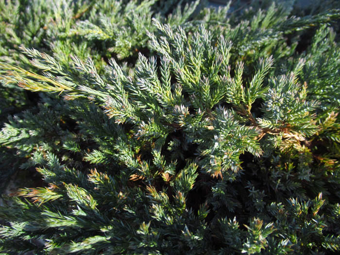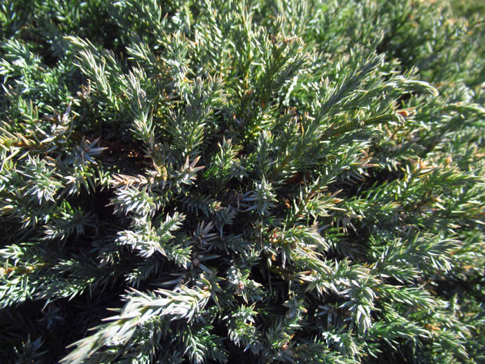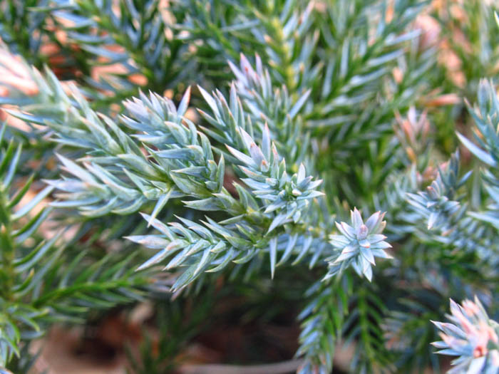 | 特徴 | 樹高20〜60cm程度。匍匐性で、四方に枝を伸ばして這い広がる。葉は銀青色の針葉で、冬はやや褐色を帯びる。 |