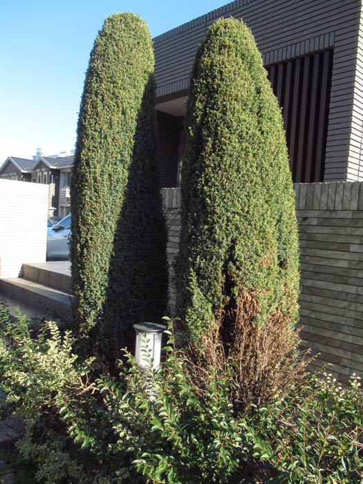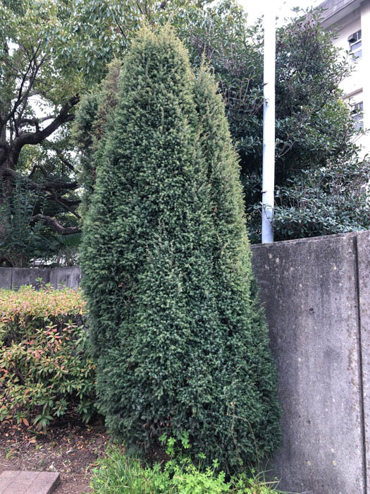| 特徴 | 樹高は2〜3m程度。樹形は狭円筒形で先が尖る。葉は表面が濃緑色、裏面が灰白緑色で、年中ほぼ同じ色を保つ。 |