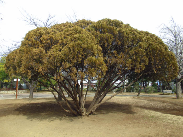 | 解説 | 樹高は5〜8m程度。株元から叢生し、卵型の樹形になる。枝や葉は密生し、平面的な枝が縦に規則正しく並ぶ。葉色は、鮮緑色で、冬は赤茶色になる。 |