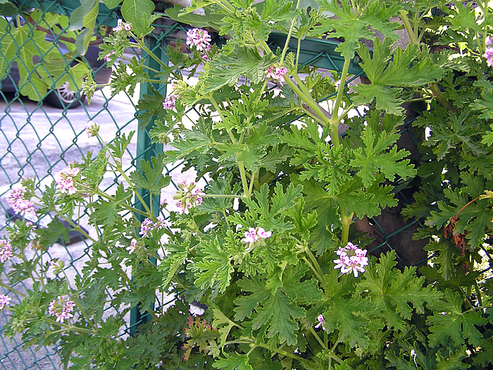 | 形態 | 葉に芳香がある。葉の形状は深い切れ込みがあったり縮れていたり、いろいろある。花は小さくて控えめ。開花期は4~6月。 |