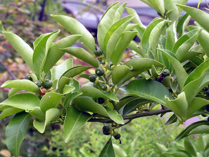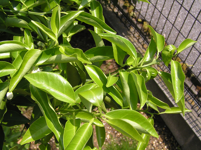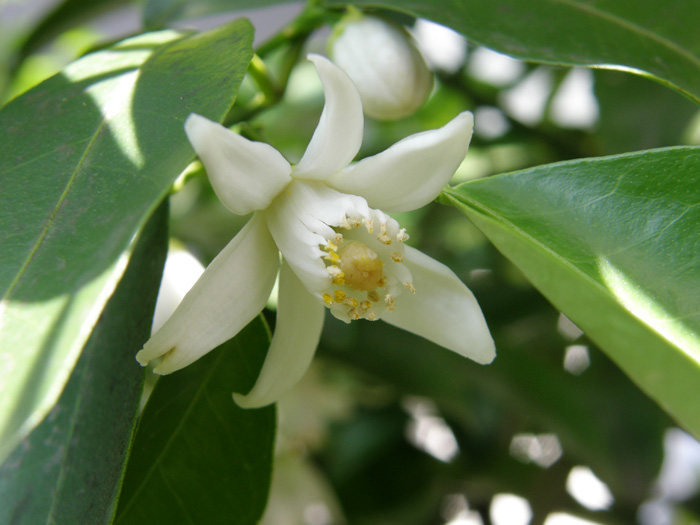 | 形態 | 樹形は直立性でよく分枝し、枝は緑色で、まばらに棘がある。葉は、先の尖った長卵形で、互生する。葉柄には狭い翼がある。5月頃、葉腋に柄を出し、白い5弁花をつける。果実は、凹凸した球形〜扁球形の液果で、10~12月頃に熟すと黄色くなり、強い香りがする。 |