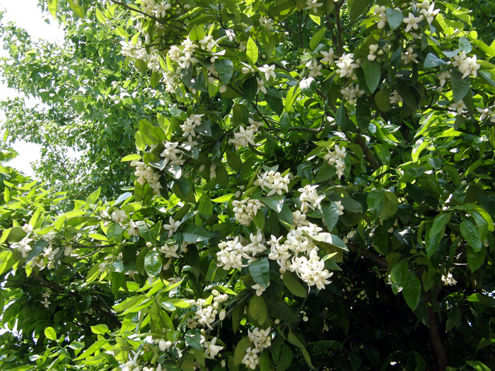 | 形態 | 樹形は直立性でよく分枝し、枝に棘はない。 葉は、楕円状披針形で、葉先に浅い鋸歯があり、互生し、葉柄には狭い翼がある。5月頃、葉腋に白色の5弁花をつける。果実は扁球形の液果で、 10~11月に黄色に熟し始めるが、翌年の初夏に完熟して酸味が抜ける。 |