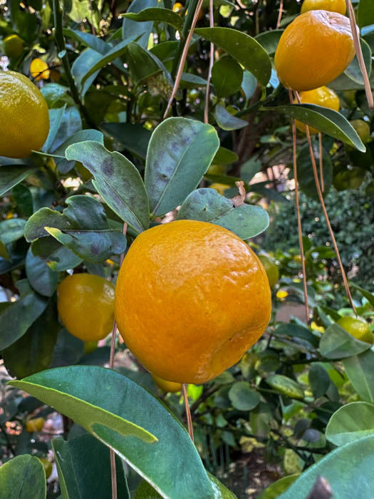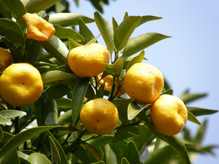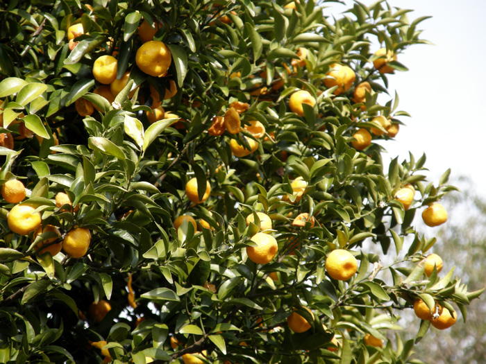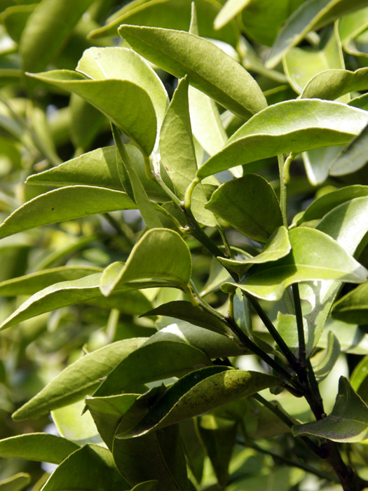 | 形態 | 枝は緑色で密に生え、若い幹には棘がある。 葉は、濃い緑色の楕円状披針形で、全縁で互生し、葉柄には翼がない。5~6月に白色の5弁花をつける。果実は扁球形の液果で、 10~11月に黄橙色に熟す。 |
