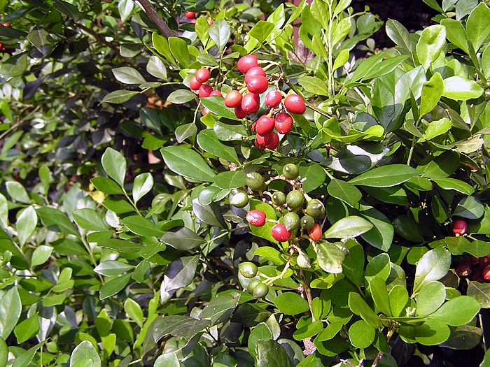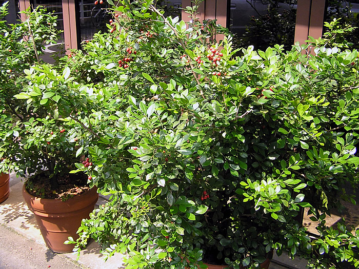 | 利用 | 鉢植え。暖地では庭木、生け垣。果実は、生食用やジャムに利用。材は、彫刻、細工物に利用される。 |