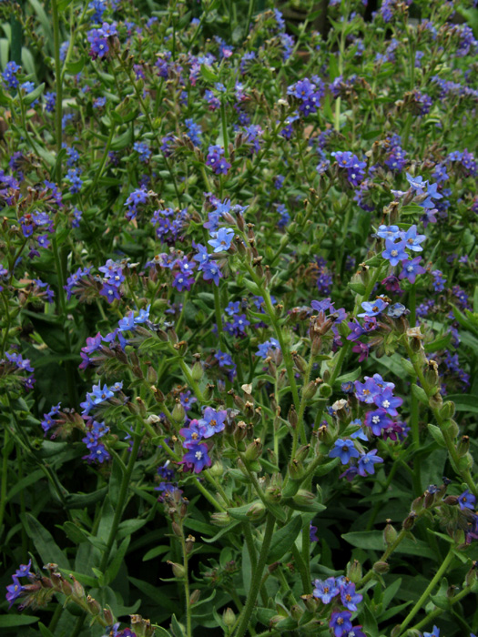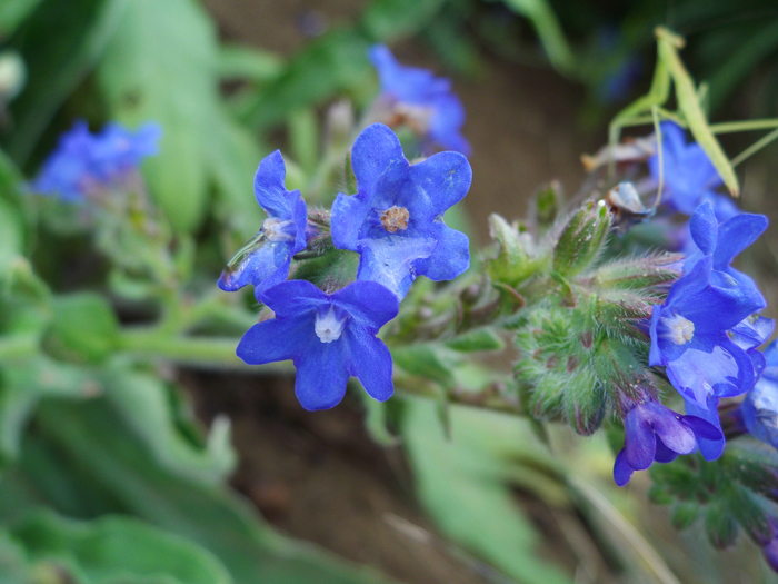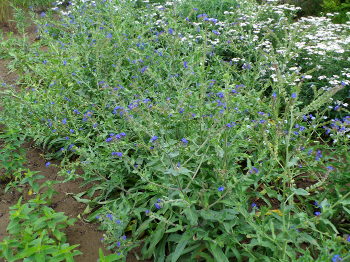 | 形態 | 全体が白い剛毛に被われている。披針形の葉を根生させる。茎につく葉は互生する。6~10月頃、茎を伸ばして分枝させ、茎頂にさそり状集散花序を出し、青紫色の花を咲かせる。果実は4分果。 |