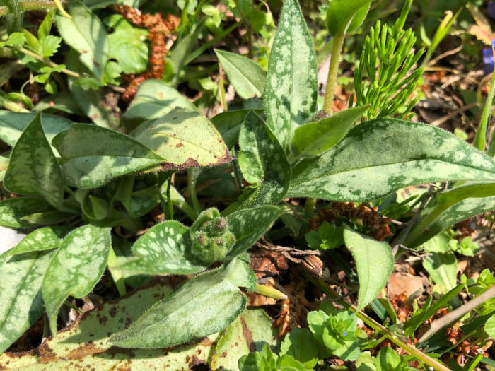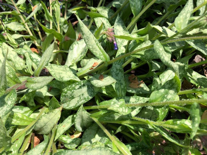 | 特徴 | 葉に白っぽい斑点が入る。花は濃紫青色。 |