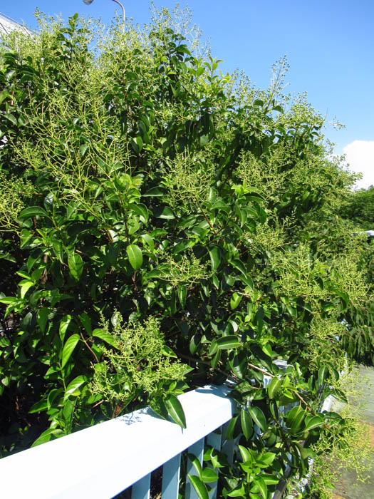 | 生育 | 強健で、各種公害にも強く、刈り込みにも耐える。耐陰性があるが、日陰だと花つきが悪くなる。「ネズミモチ」よりも成長が早い。繁殖は、挿し木、実生。 |