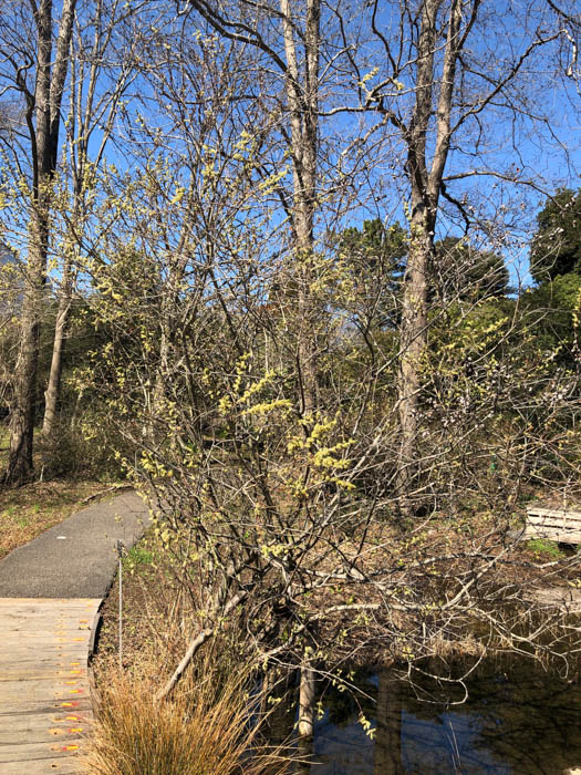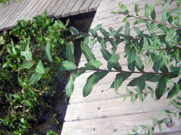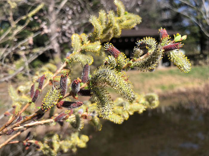 | 形態 | 株立ち樹形。樹皮は白灰色で、太くなると円形状あるいは縦の割れ目ができる。一年枝は、緑褐色~紅紫色で光沢がある。葉は、先が鋭頭~鈍円頭の長楕円形で、低い細鋸歯があり、葉柄はごく短いか無い。葉のつき方は基本は対生だが、互生や3輪生などが混在する。3~5月頃、葉の展開に先がけて短い花穂を作る。花は花被はなく、しべと苞のみからなる。雄花は赤い葯から黄色い花粉を出すので赤い花穂が先端から順に黄色くなっていく。雌花は全体に薄黄緑色で、苞の先端が黒と赤に染まる。果実は蒴果で、6月頃熟すと2裂し、白い綿毛を持つ種子を、数個出す。 |