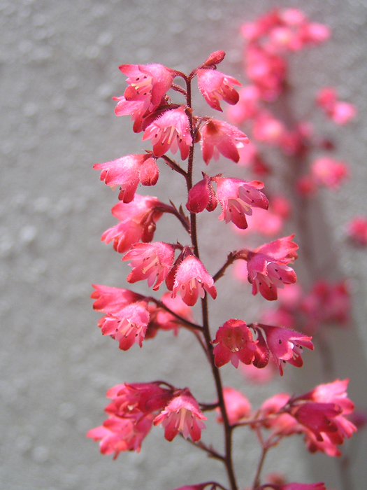 | 原産地 | 「ツボサンゴ(壺珊瑚) Heuchera sanguinea」〔北アメリカ西南部、メキシコ原産〕、「ヒューケラ・ミクランサ Heuchera micrantha」〔北アメリカ西南部原産〕、「ヒューケラ・アメリカーナ Heuchera americana」〔北アメリカ中央部原産〕などを掛け合わせて作られた交雑種。園芸品種が多数ある。 |