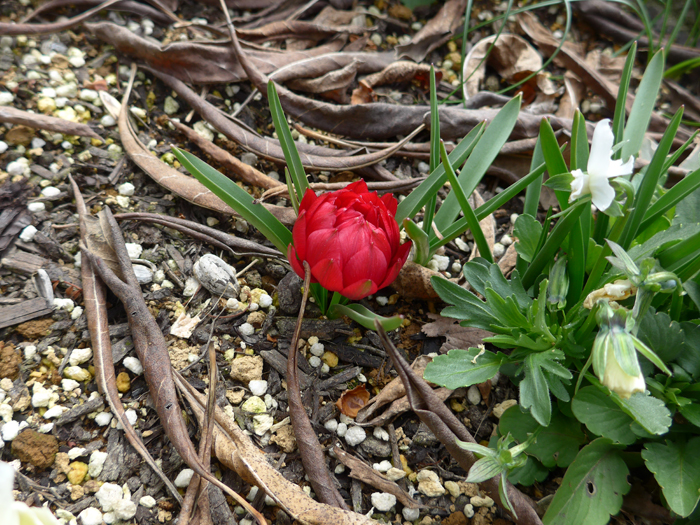 | 特徴 | 3月下旬頃、赤色でダブル咲きの花を咲かせる。 |