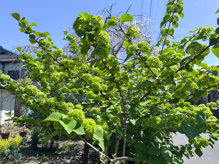 | 解説 | 「ヤブデマリ」の園芸品種で、品種改良によって花序の花すべてが装飾花となったもの。 |