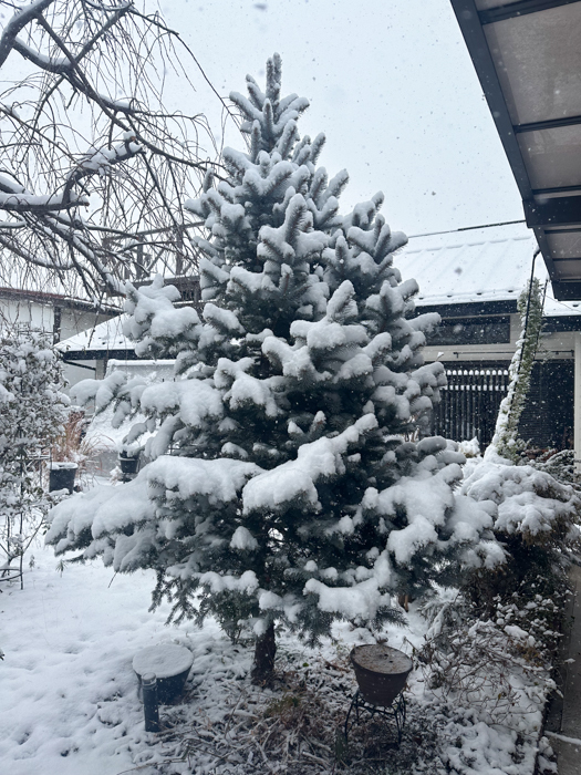 広円錐形の端正な樹形のコロラド唐檜は雪が降り積もるとまさにクリスマスツリー。
