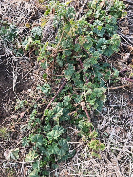 | 形態 | 茎は直立~斜上する。葉は掌状に5~7裂し、鋸歯があり、長い葉柄があり、互生する。春〜夏頃、白〜薄桃色で、薄紫の筋が入る5弁花を咲かせる。ひとつの葉腋には数個〜十数個の花が次々と咲く。果実は扁球形の分果で、放射状に約10個に分かれる。分果の表面には網目状の脈がある。 |