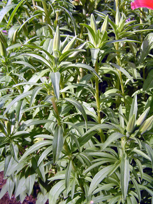 | 品種 | 草丈20~30cmの矮性種がある。花色は、赤、赤紫、桃色、サーモンピンク、白などがあり、花弁の中心部の色が違うものが多い。 |