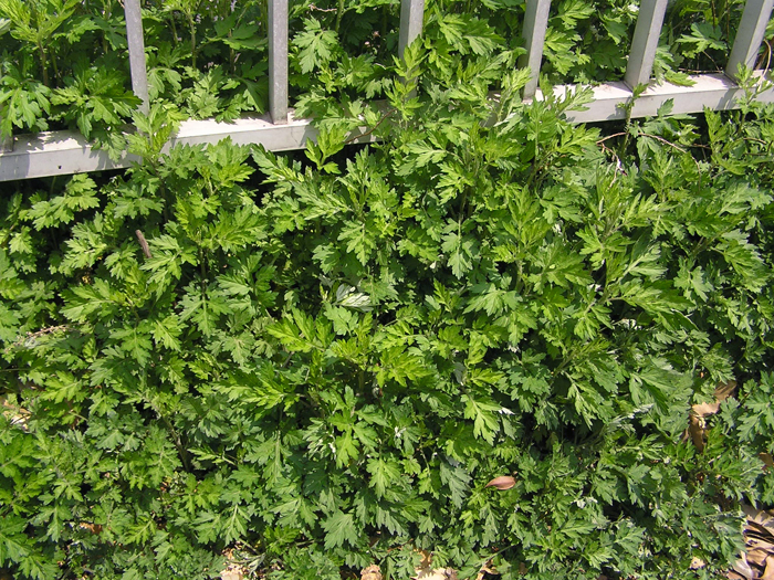 | 形態 | 地下茎が横に伸び、増殖して群生する。茎は直立し、よく分枝する。葉は楕円形で羽状に深裂し、葉裏は綿毛が密生して灰白色になり、互生する。葉の付け根には小さな仮托葉がある。9~10月頃、茎頂に複総状花序を作り、筒状花のみの頭状花を多数下向きに咲かせる。晩秋に茎葉が枯れ、小さな新芽で越冬する。 |