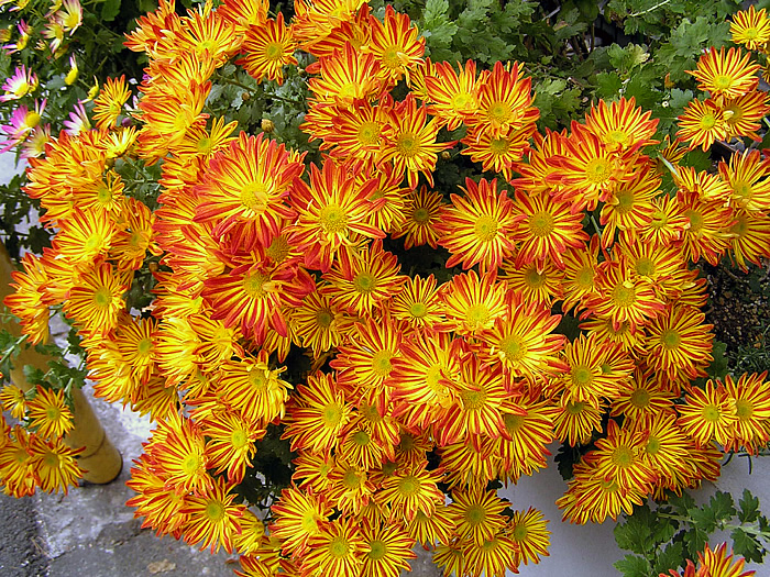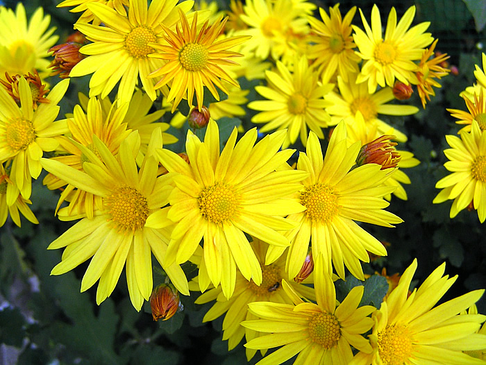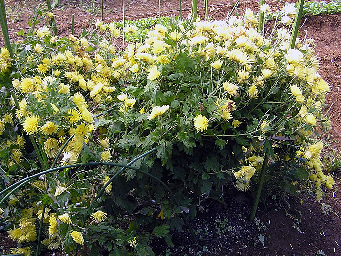 | 品種 | 大きく和菊と洋菊があり、花の大きさによって、大菊、中菊、小菊に分類され、さらに花形が、一重咲き、八重咲、抱え咲き、平咲き、立ち弁咲き、ボンボン咲きなどに細分される。また、食用となる種もある。 |