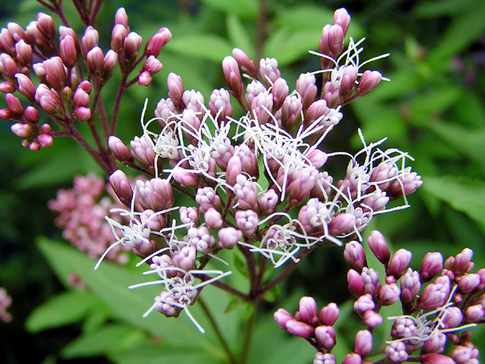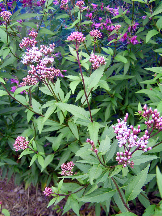 | 形態 | 株も葉も「フジバカマ」よりやや小型で、葉色が明るく茎が赤味を帯びる。花の桃色が濃く、密につく。 |
