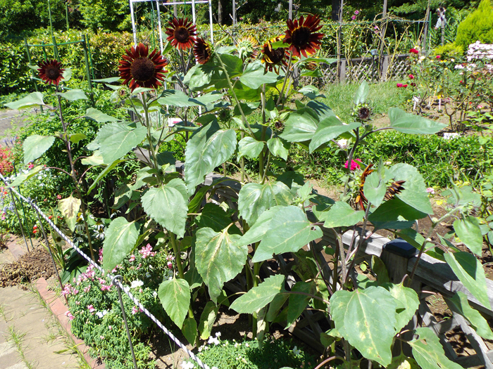 | 品種 | 草丈300cmになる高性品種や、30cmほどの矮性品種など、数多くの園芸品種がある。花色も赤褐色や黄褐色のものもあり、八重咲きもある。花序径40cmになる巨大輪のものもある。 |