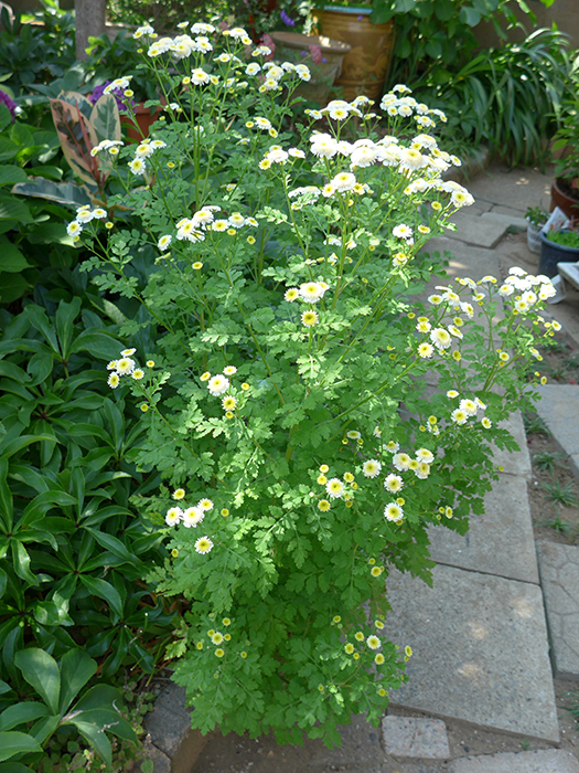 | 名の由来 | 「マトリカリア」は、旧属名。 「フィーバーフュー」は、解熱剤を意味する。葉が薬用に用いられるため。 |
