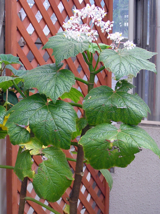 | 形態 | 茎がまっすぐに立ち上がる性質を持つ。葉の形は左右非対称で、ややゆがんだ形をしている。1~数本のシュートを出し、葉腋から花茎を出して集散花序の花を咲かせる。 |