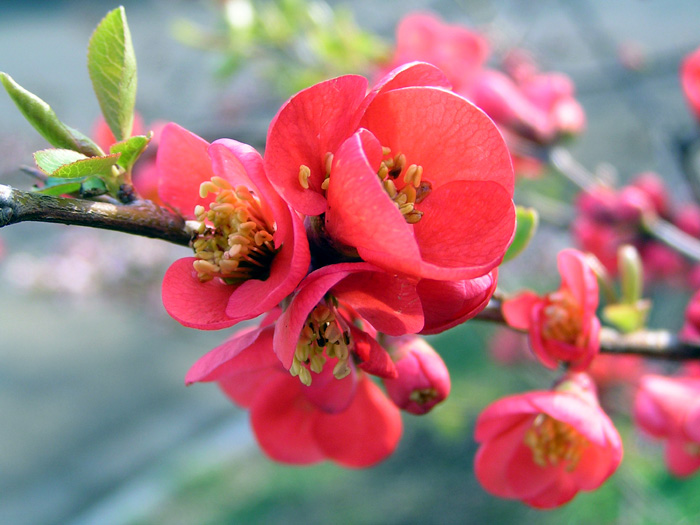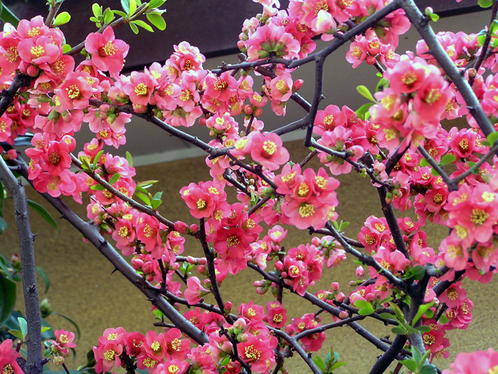 | 品種 | 「クサボケ」との交配などによる、様々な園芸品種がある。花色は朱赤、紅、赤、白、絞り、咲き分けなど。八重咲きや大輪種などがある。早咲きの品種は「カンボケ(寒木瓜)」と呼ばれる。 |
